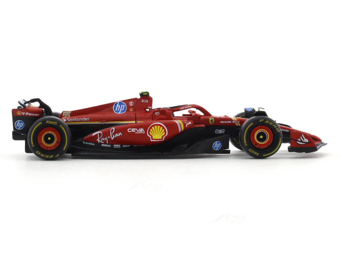 The BBURAGO FERRARI SF24 CARLOS SAINZ 1:18 SCALE DIECAST MODEL is a high-quality replica of the famous Ferrari SF24 car, driven by Carlos Sainz. Made at 1:43 scale, this model is meticulously crafted and designed for accurate representation. Perfect for car enthusiasts and collectors, this diecast model offers a unique and detailed perspective on one of Ferrari's most iconic vehicles.