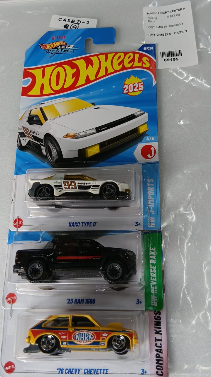HOT WHEELS - CASE D (2025) - BASIC CAR ASSORTED (PACK OF 3 )-DIECAST. each packet would contain different models.