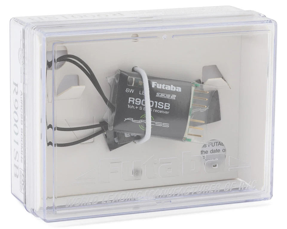 Futaba R9001SB 900MHz FHSS S.Bus 1-Channel Receiver. Designed for FPV racing and is compatible with the TM-18 RF system, this super responsive R9001SB 900MHz FHSS S.Bus receiver features a small and super lightweight design that fits perfectly in most FPV quads on the market and a perfect addition to the TM-18 18-Ch system!