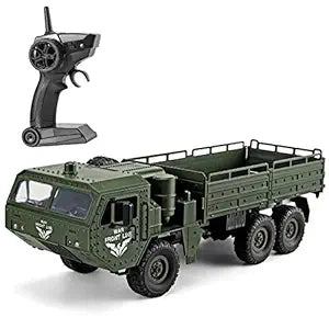 1:16 RC Military Truck Dimensions:18.3*5.9*6 inches(46.7*15*15.5cm); Made from high quality ABS plastic and non-toxic, explosion-proof PVC material, this car is safe for children.