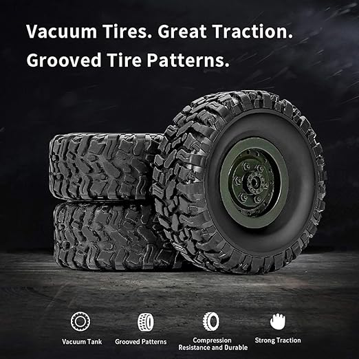 The RC trucks body is made of high-quality ABS plastic and metal materials, rubber wheel for anti-skid, prevent slippery realistic road cross country vehicle design and with Suspension shockproof system: adopted with a Helical spring with high resilience for each wheel, can prevent damages caused by the vibration effectively