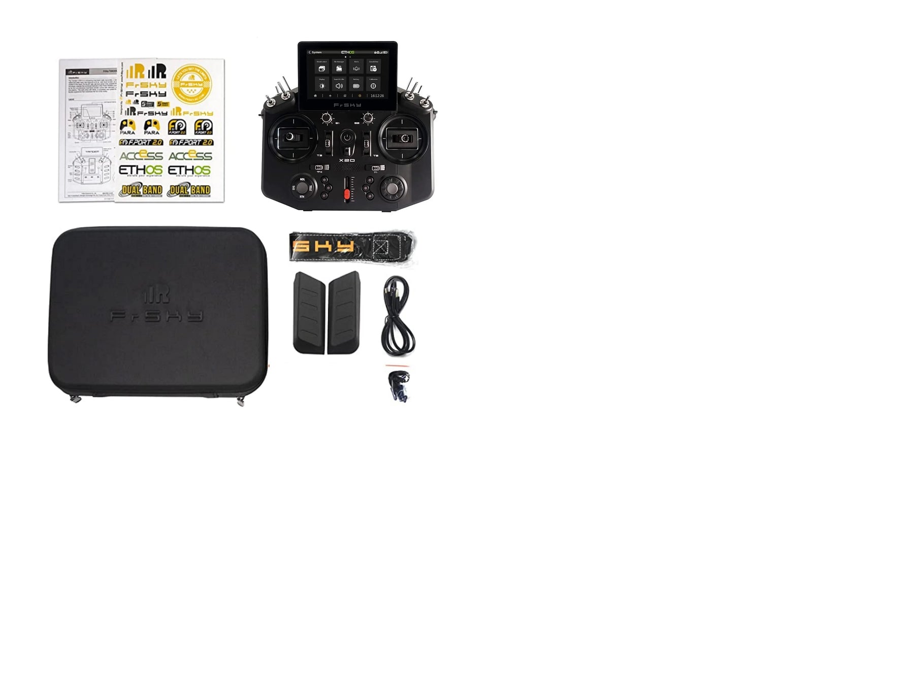 The Tandem X20 is a pioneering dual-band radio transmitter, it drew on feedback and experience with previous radios and adds many new features such as color touch screen, an ergonomic design that provides unprecedented comfort in the hand. On the RF side, we have given it the powerful RF system , the TD dual RF system, which does not simply reiterate the combined features of the FRSKY900MHz and 2.4GHz RF systems. The TD is characterized by its true simultaneous dual-band remote control with telemetry, enabling incredible and unmatched end-to-end 4ms latency. This radio ships with ETHOS, a completely new system that provides users with a powerful, intuitive, and flexible experience that maximizes the fun of the hobby