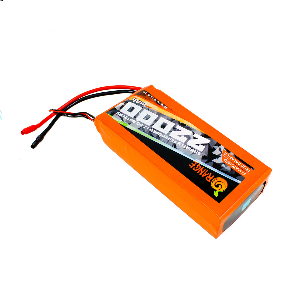 Orange 22000mAh 4S 35C Lithium polymer battery Pack (LiPo) batteries are equipped with heavy-duty discharge leads to minimize resistance and sustain high current loads. Orange batteries stand up to the punishing extremes of aerobatic flight and RC vehicles. Each pack is equipped with gold-plated connectors and JST-XH style balance connectors. All Orange Lithium Polymer battery packs are assembled using IR match cells.