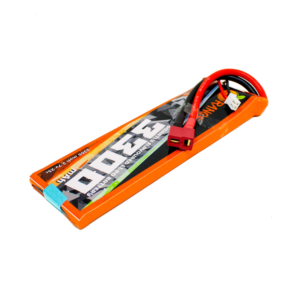 Orange 3300 mAh 1S 25C Lithium polymer battery Pack (LiPo) batteries are equipped with heavy-duty discharge leads to minimize resistance and sustain high current loads. Orange batteries stand up to the punishing extremes of aerobatic flight and RC vehicles. Each pack is equipped with gold plated connectors. All Orange Lithium Polymer batteries packs are assembled using IR matched cells.