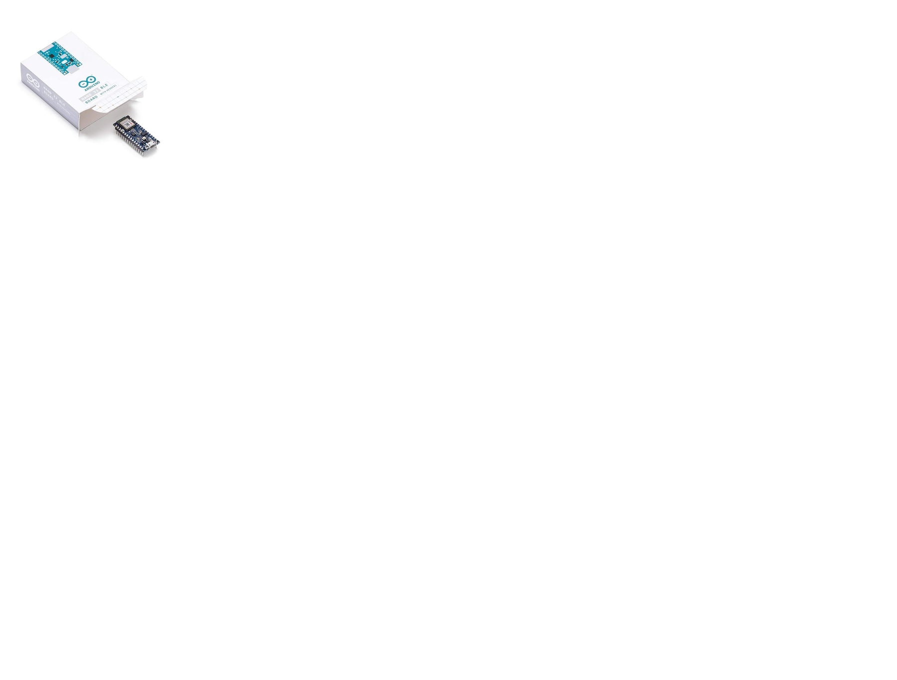 The Nano 33 BLE (without headers) is Arduino’s 3.3V compatible board in the smallest available form factor: 45x18mm!