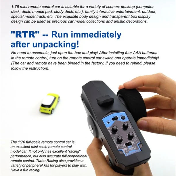 Hobby Porter is proud to bring you the world’s smallest fully-proportional RC Car! This RC car is hours of fun for children and adults and can turn just about any space into a race track!